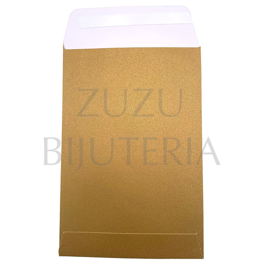 Saqueta de Papel com Pala Autocolante Dourado 15cm x 9cm