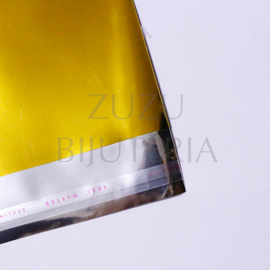 Saqueta de Papel com Pala Autocolante Dourado 20cm x 12cm