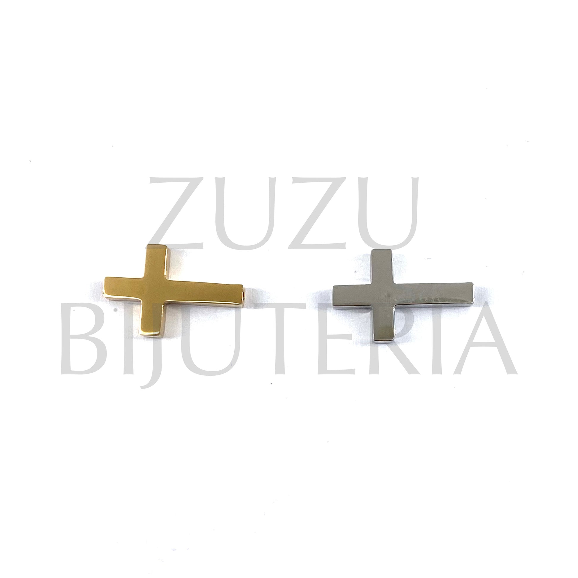 Pendente/Entremeio Cruz 12mm x 18mm (Grosso 3mm Furo 2mm) - Aço Inox
