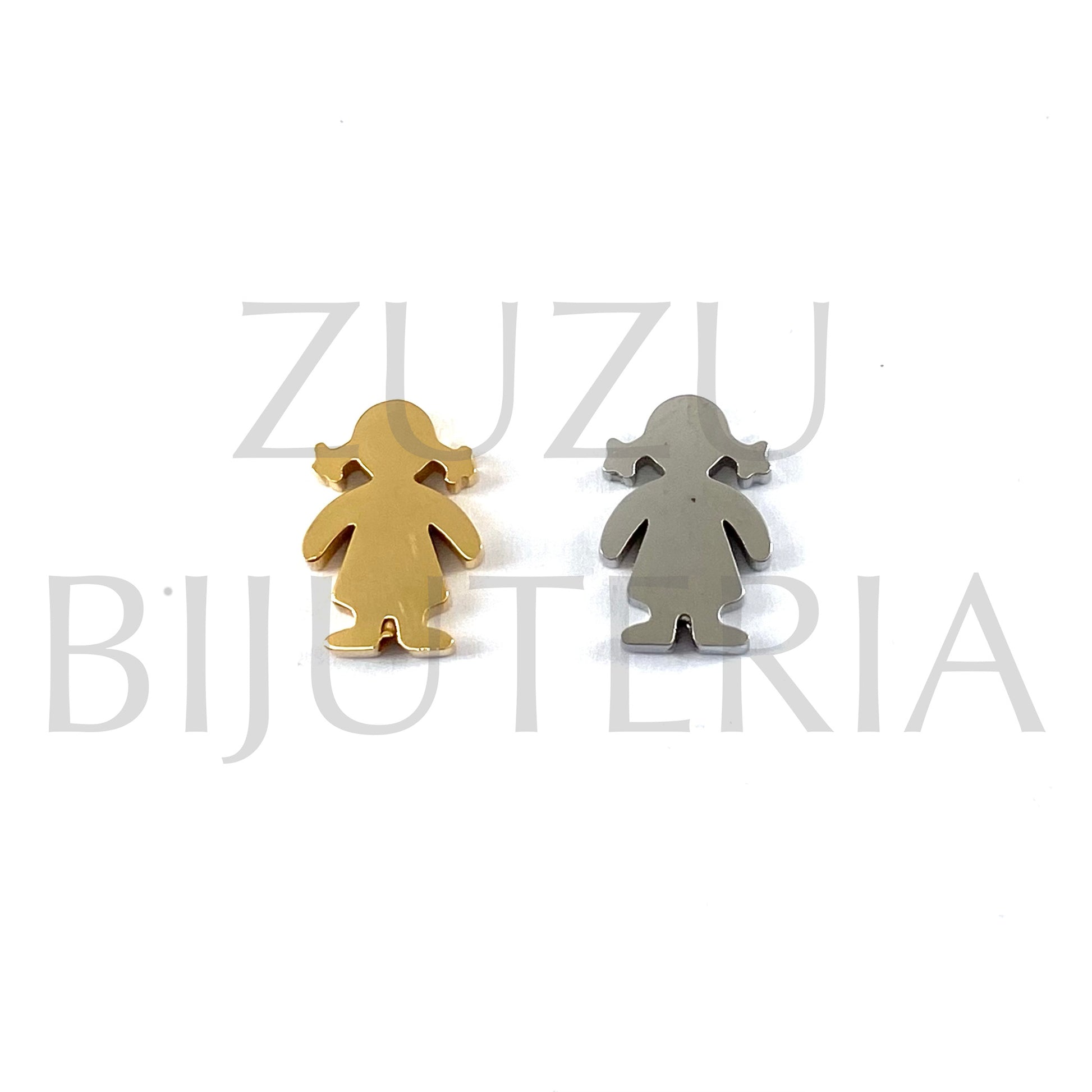 Pendente/Entremeio Menina 15mm x 11mm (Grosso 3mm Furo 2mm) - Aço Inox