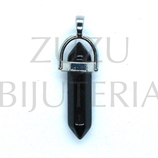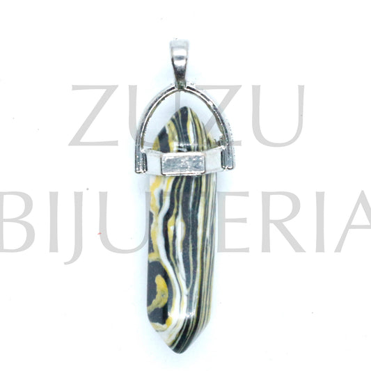 Pendente Pedra Howlita Preto 36mm x 14mm - Aço Inox