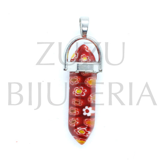Pendente Pedra Prateado Cores Fluorescênte 41mm x 18mm - Cobre