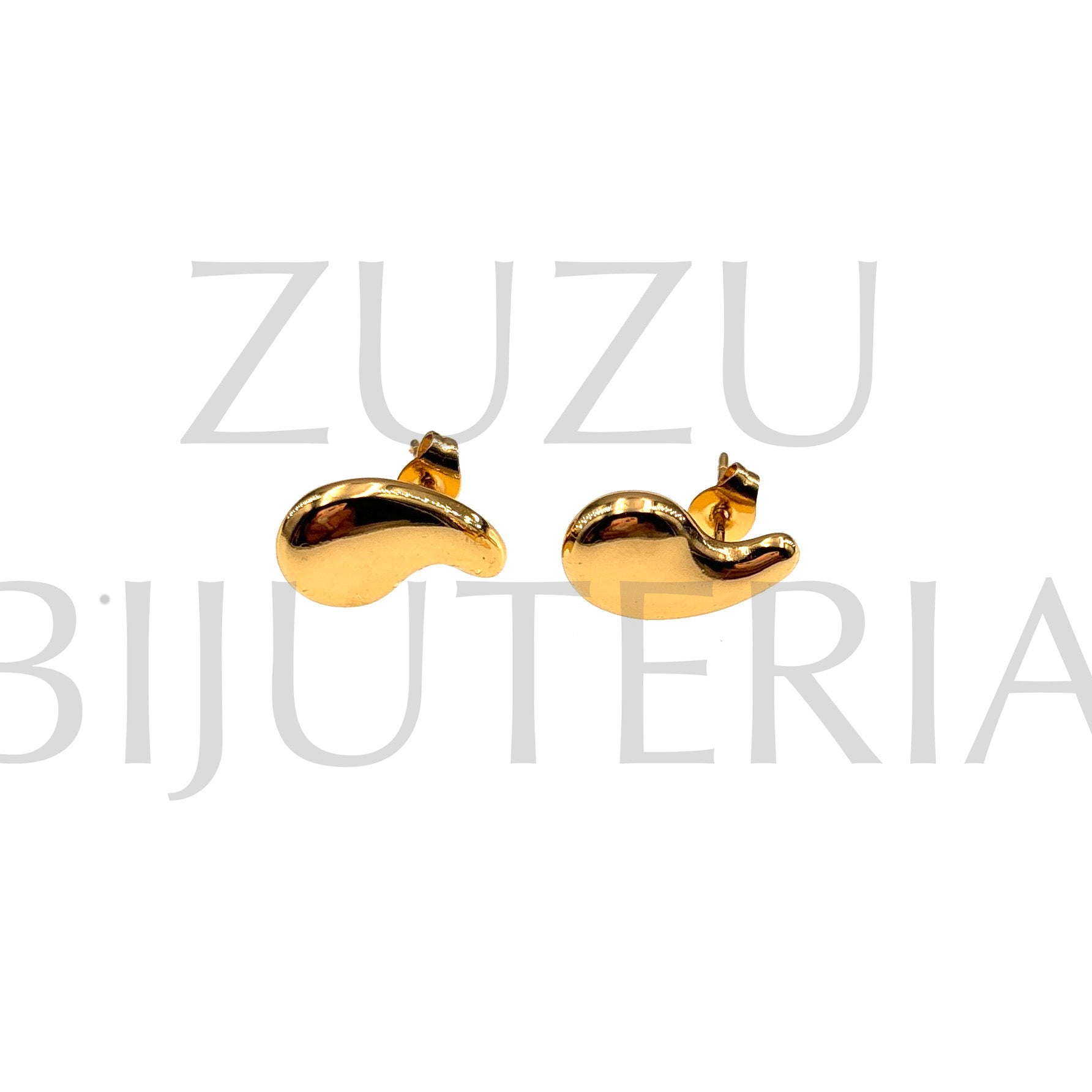 Brinco Gota Dourado 15mm x 10mm - Aço Inox