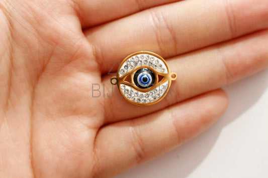 Pendente/Entremeio Olho com Zirconias - Aço Inox