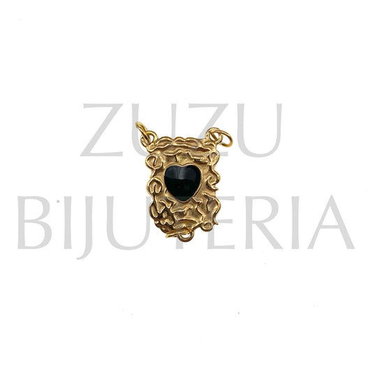 Pendente/Entremeio Coração com Detalhes Dourado - Aço Inox