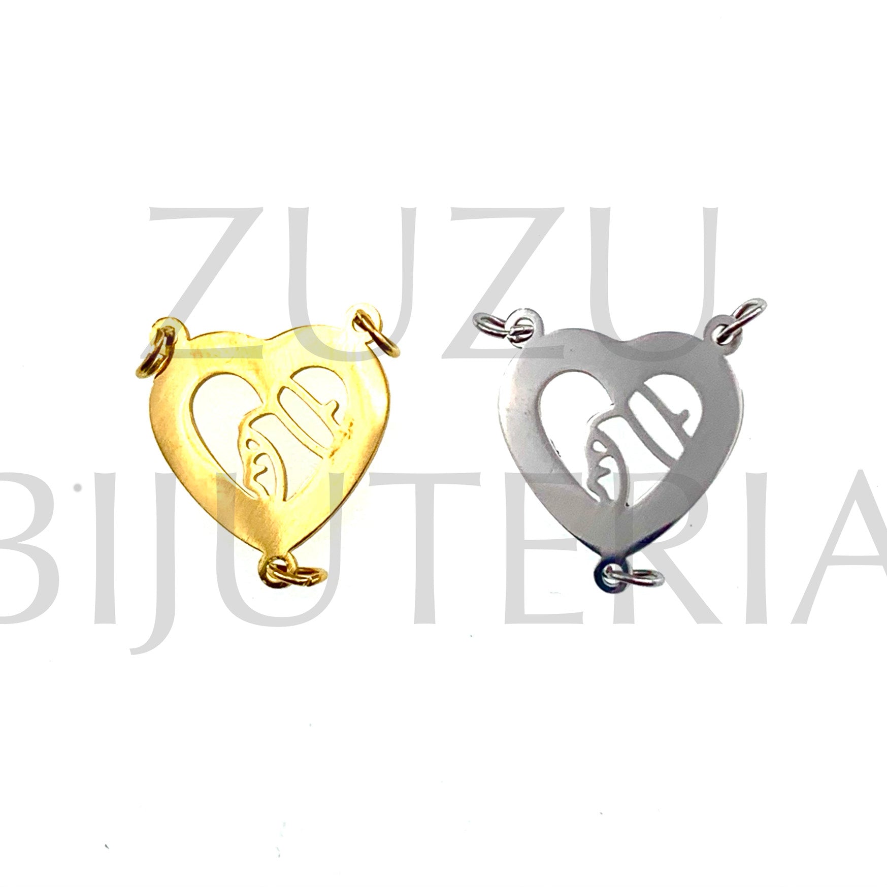 Pendente com 3 Argolas Coração Nossa Senhora 16mm - Aço Inox