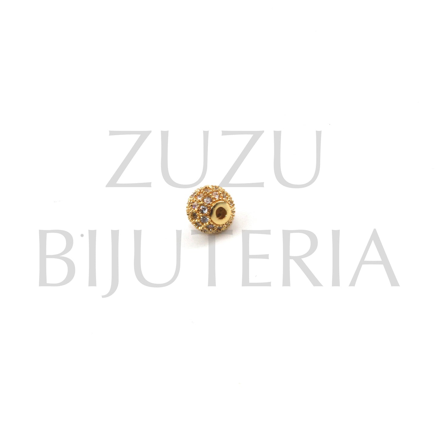 Conta/Entremeio Dourado com Zirconias 8mm - Latão