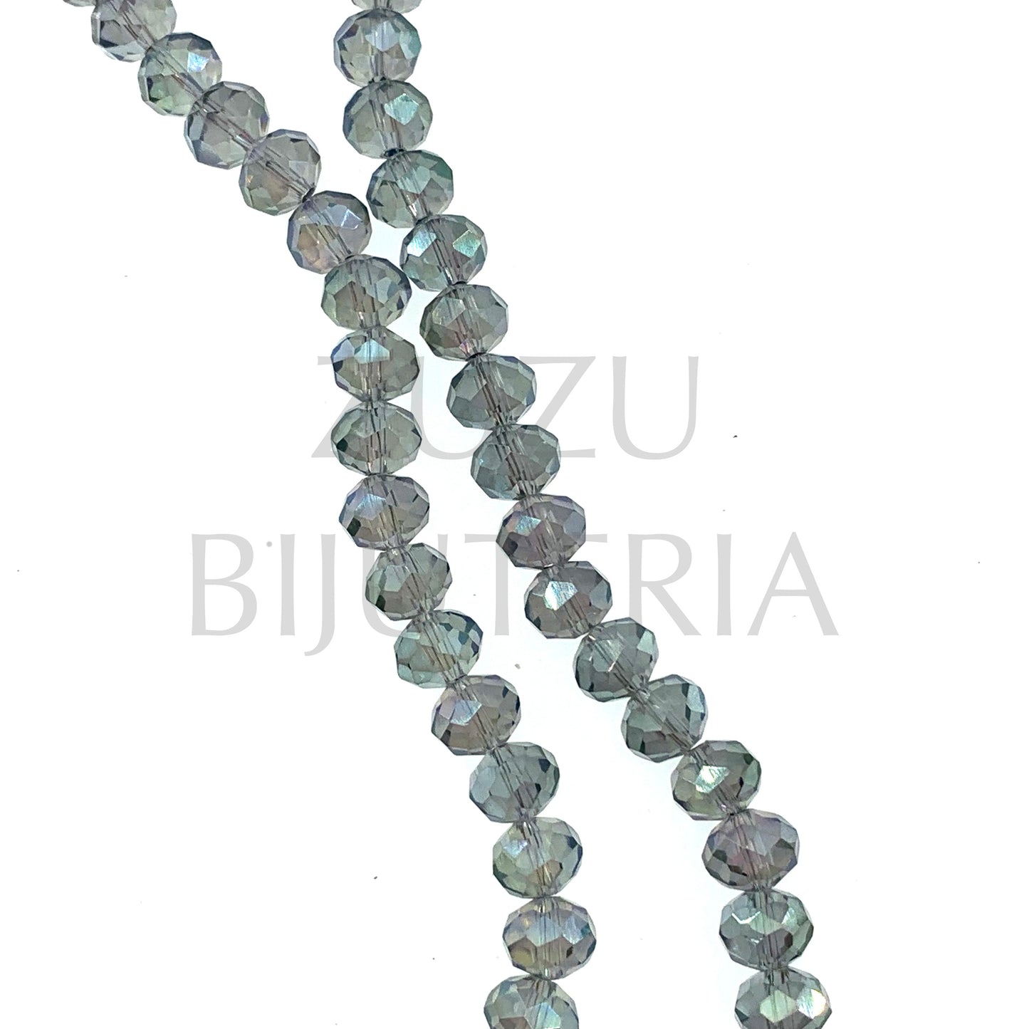 Fiada Cristais Facetado 8mm (Furo 1mm) - Cinzento Espelhado (40cm)